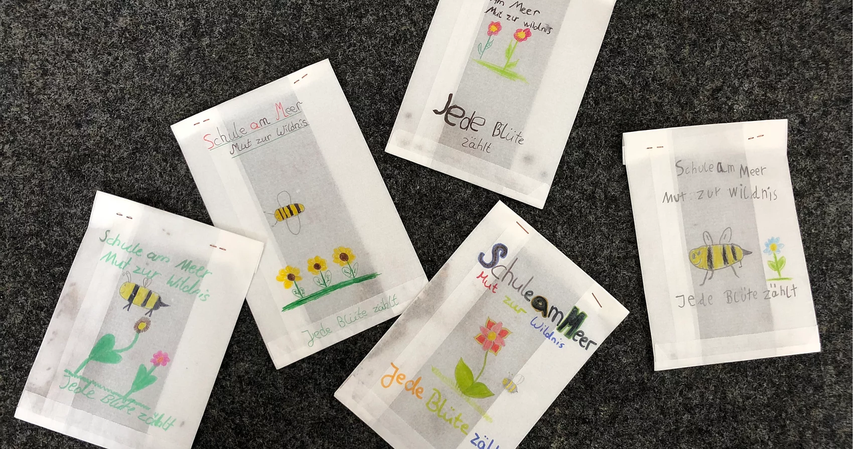 Unter- und Mittelstufenschüler haben Saatguttütchen gestaltet und mit bienenfreundlichem Saatgut befüllt.