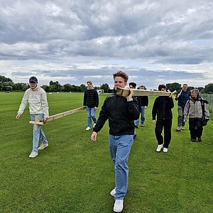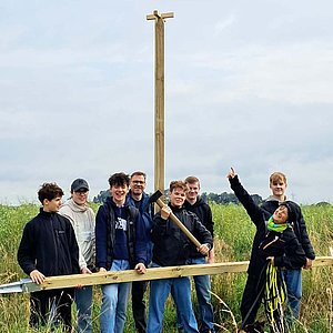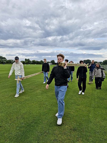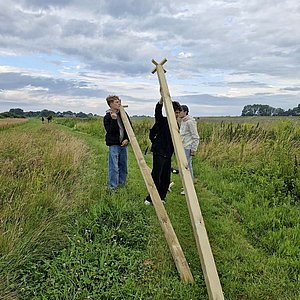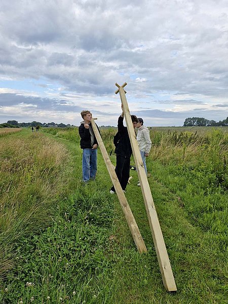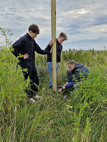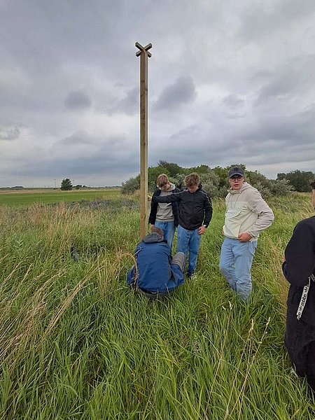 Schule am Meer in Büsum stellt Greifvogelständer auf dem Golfgelände in Warwerort auf.