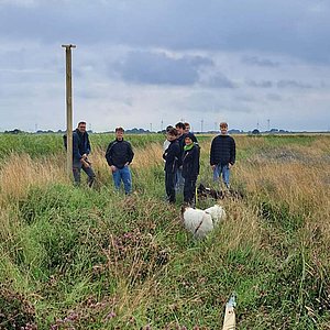 Auf dem Golfgelände in Warwerort konnten die SchülerInnen ihre Sitzstangen, die sie im Werkunterricht gebastelt hatten, in den Boden hämmern. Zuvor wurde der zuständige Jäger Gerhardt Prütz interviewt, auf welche Gegebenheiten beim Aufstellen zu achten ist: Greifvogelständer sollen möglichst ohne benachbartes Buschwerk allein am Rand von großen Flächen stehen. Ralph Münchow, der Präsident des Golfclubs Warwerort, bot hierfür verschiedene Plätze an. Golfplätze können somit einen wichtigen Beitrag für die Stützen der Biodiversität leisten. Die Initiative „Mut zur Wildnis“, welche seit zehn Jahren an der Schule am Meer existiert und von der Biologielehrerin Dr. Kirstin Poremba ins Leben gerufen wurde, erweitert sich so mit zahlreichen neuen Ideen immer mehr. So fühlen sich dort alle wohl - nicht nur GolferInnen - sondern ab jetzt auch Habicht, Bussard, Sperber und Eule.