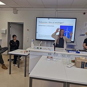 Zum Abschluss diskutierte die Klasse gemeinsam mit den Wissenschaftler*innen des ITAW, wie mit solchen Nachhaltigkeitskonflikten konstruktiv umgegangen werden kann.