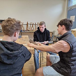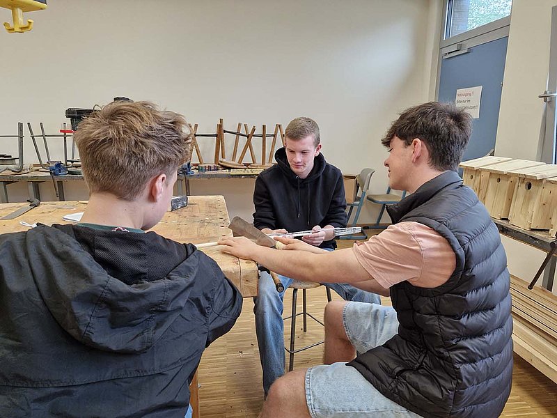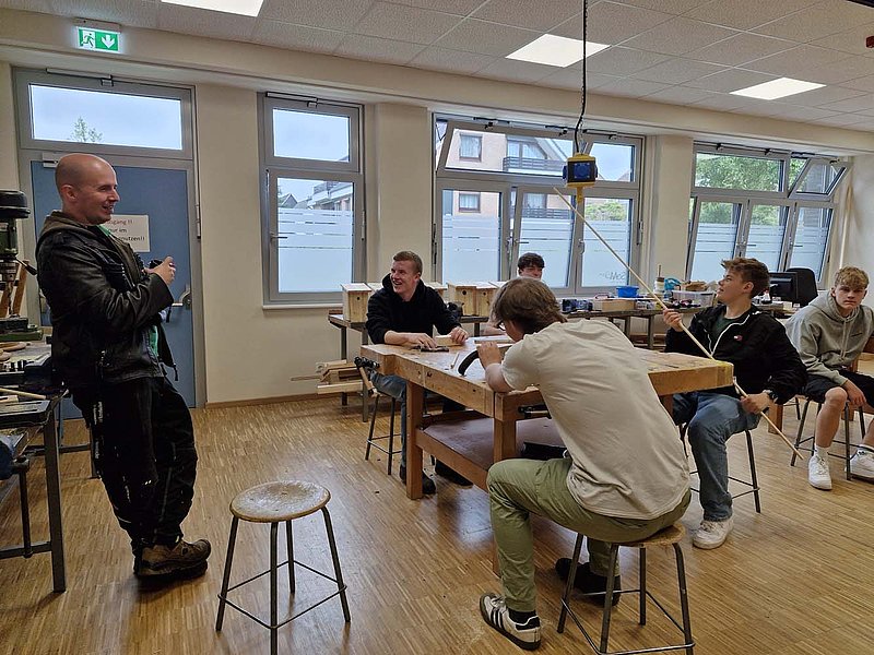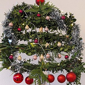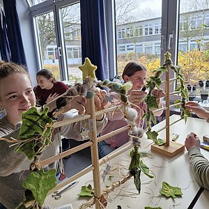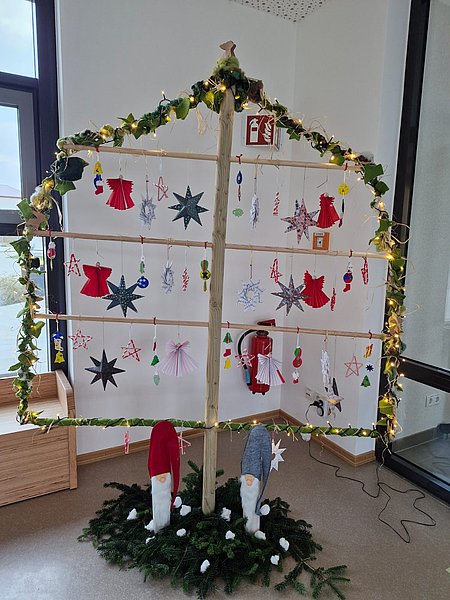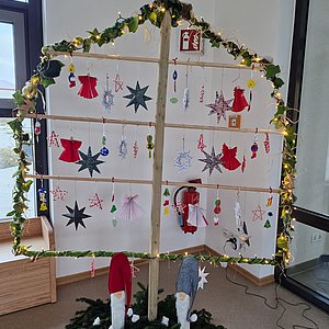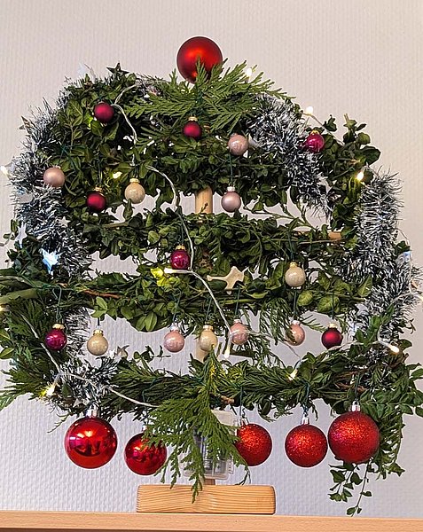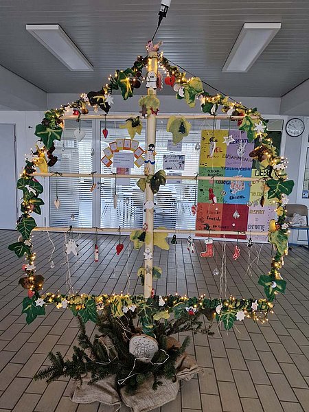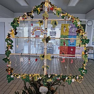 Bei der letzten Lehrerkonferenz hat sich das gesamte Kollegium dafür entschieden diese Alternative auszuprobieren. In den Pausenhallen stehen Weihnachten 2024 zwei 1,80m hohe Jöölboome und jeder Klasse steht ein eigener kleiner Jöölboom zum Selberschmücken bereit-alles selbstgemacht.
