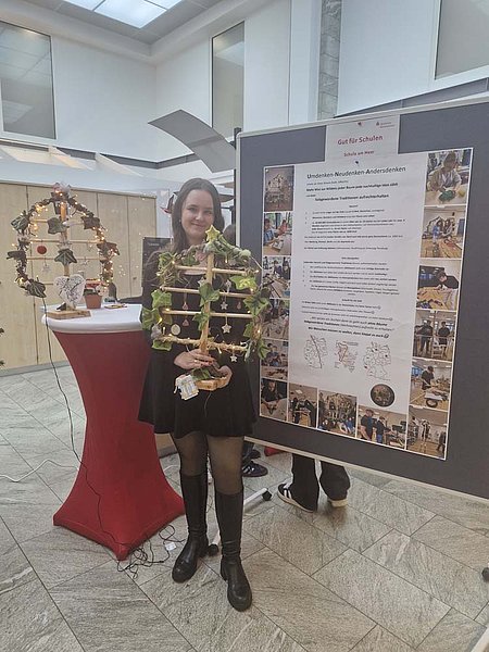 In diesem Jahr hat sich das Projekt „Umdenken-Neudenken-Andersdenken“ dem Jöölboom gewidmet, denn liebevoller Verzicht und trotzdem liebgewonnene Traditionen aufrecht zu erhalten, schafft neue Räume für „Mut zur Wildnis“. Das Projekt wurde beim SH-Umweltpreis 2024 mit dem 2. Platz prämiert und beim Schülerwettbewerb „Gut für Schulen“ der Sparkasse Westholstein auserwählt und wurde am 27.11.24 in Meldorf geehrt.