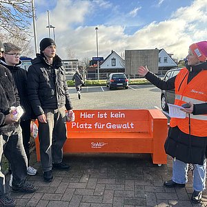 Im Rahmen des Wahlpflicht-Unterrichts „Werken“ hat der stellvertretende Schulleiter Kai Giese mit Schülerinnen und Schülern des zehnten Jahrgangs eine orangefarbene Holzbank gefertigt. Swanhilt Möbius-Staats, Gleichstellungsbeauftragte des Amtes Büsum-Wesselburen, ist mit diesem besonderen Auftrag in Vorbereitung auf die Orange Days 2024 an die Schule am Meer herangetreten. Während der Orange Days werden diese Bänke in vielen Gemeinden und Städten aufgestellt, um ein sichtbares Zeichen zu setzen gegen Gewalt gegen Frauen und Mädchen.