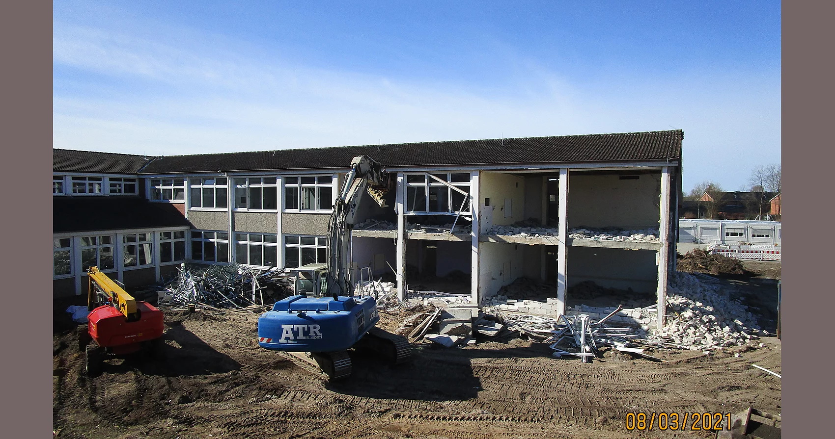 In der zehnten Kalenderwoche wurde die Entkernung der Gebäudeteile, die für den Abriss bestimmt sind, fortgesetzt.