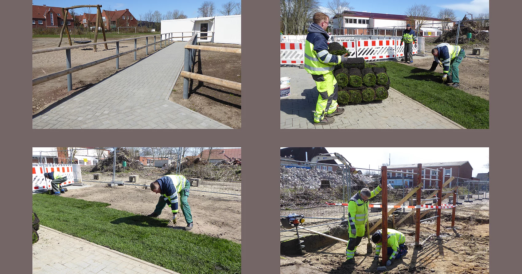 Zu Beginn dieser Woche nagten die Bagger am letzten noch stehenden Gebäudeteil, welches am Ende derselben dann auch verschwunden war. Außerdem wurde die ruhige Zeit während der Osterferien genutzt, das Außengelände der Ersatzschule zu verschönern und weitere Spielgeräte zu errichten.
