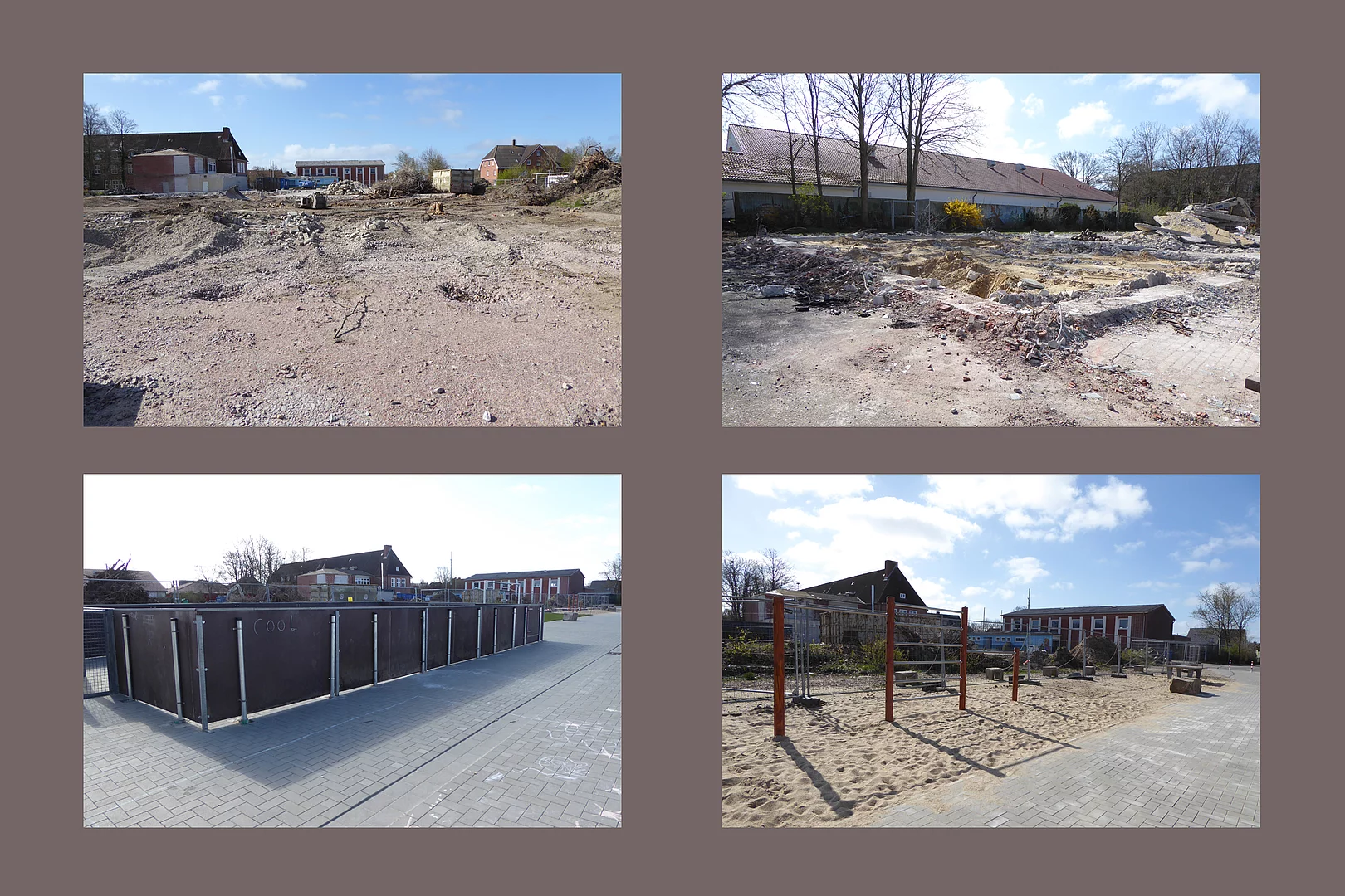 Der Bauschutt ist fast abgefahren. Es wurde begonnen, die Gründung (Fundament und Sohlplatte) auszubauen. Weiterhin gehen wir davon aus, dass der Abbruch Ende Mai abgeschlossen sein wird. Die Grundschüler freuen sich sehr über die neuen Spielgeräte und das Streetsoccer-Feld.