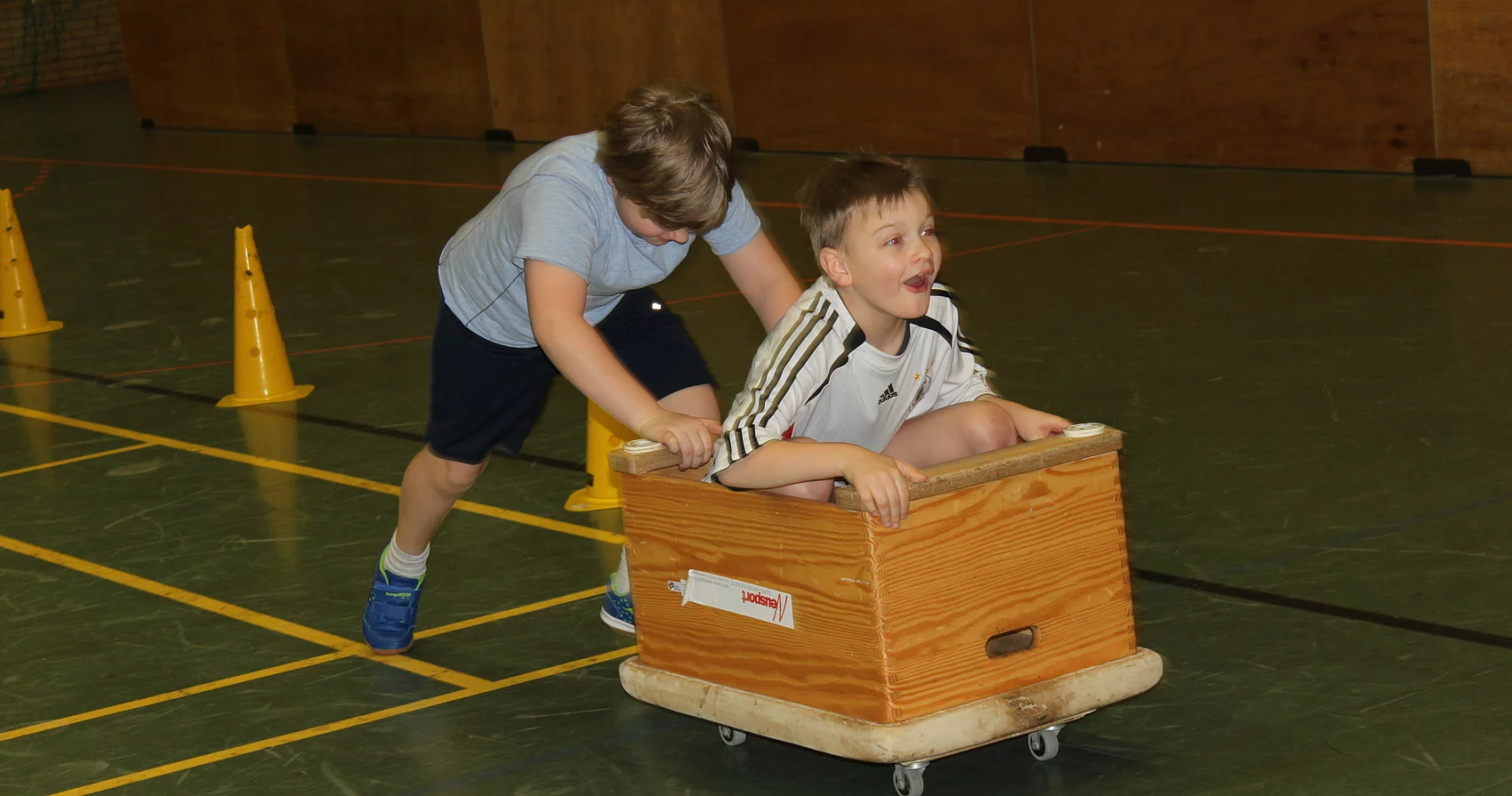 Das „Wintersportfest“ ist für die Grundschülerinnen und Grundschüler ein sportliches indoor Highlight, wenn es draußen nass und schmuddelig ist. In der Mehrzweckhalle werden mit viel Kreativität verschiedene Stationen aufgebaut, an denen sich die Kinder austoben können und gleichzeitig viel Spaß haben. Einige Stationen sind Wintersportdisziplinen nachempfunden, so kann man beispielsweise Eislaufen und Schlittenfahren auf Teppichfliesen testen, eine Bobfahrt im umgedrehten Kasten auf Rollen genießen oder das Bergsteigen über Gymnastikbälle ausprobieren.