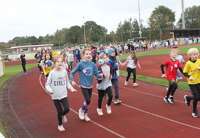 Die Schule am Meer hat wieder beim "AOK Laufwunder" mitgemacht. Die Schülerinnen und Schüler von der ersten Klasse bis zum Abiturjahrgang haben sich auf dem Sportplatz am Rosengrund getroffen, um ihre Ausdauer unter Beweis zu stellen. Einige Lehrkräfte waren ebenfalls dabei, gut getarnt als Einhorn, Frosch oder Hai.