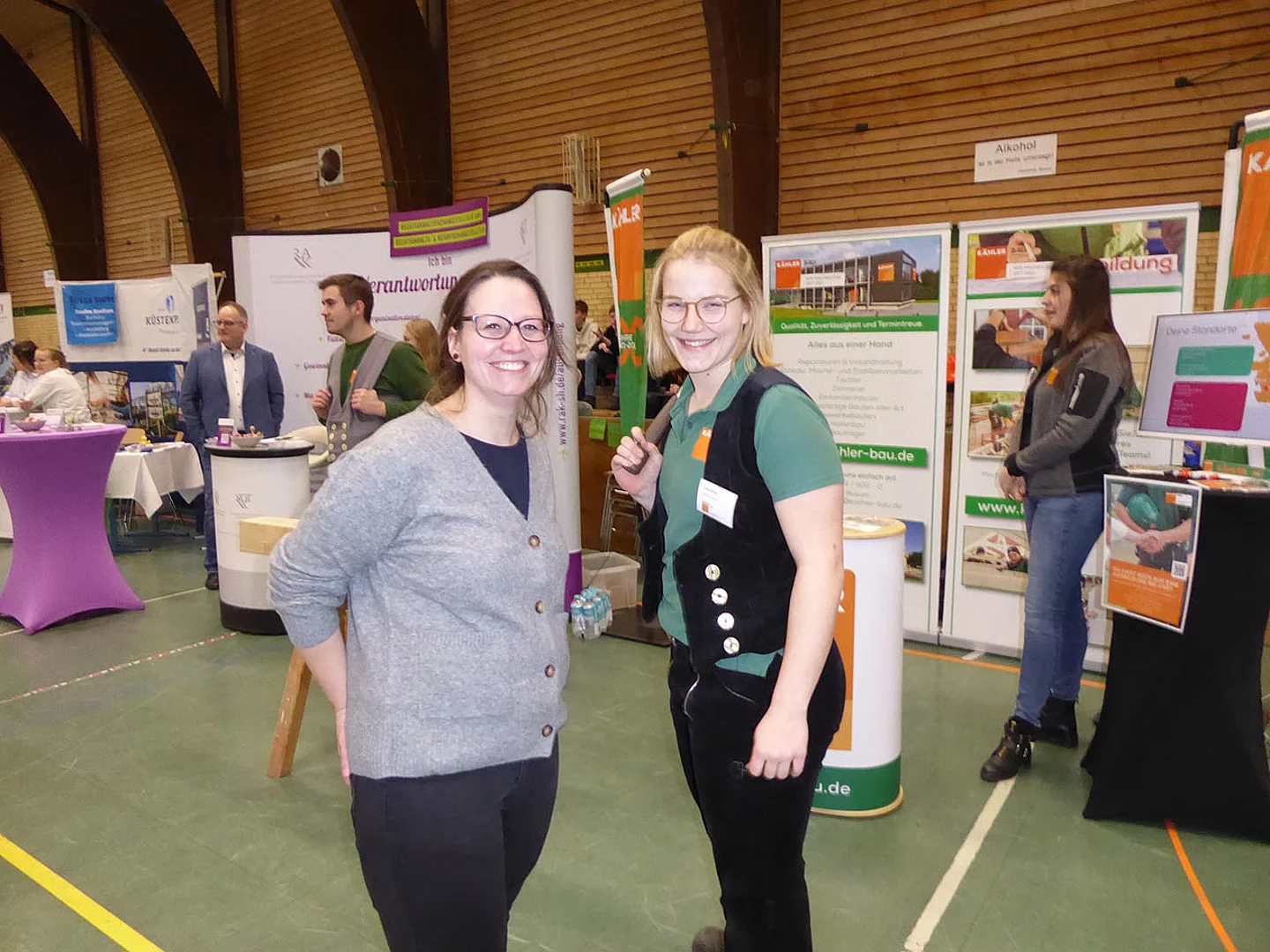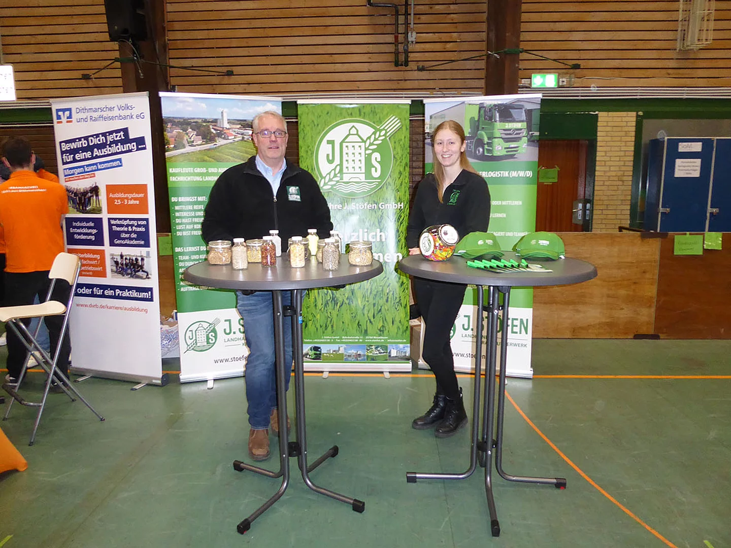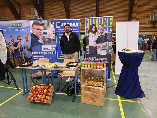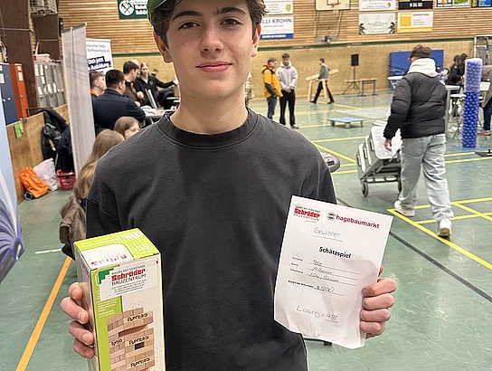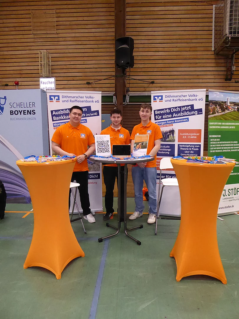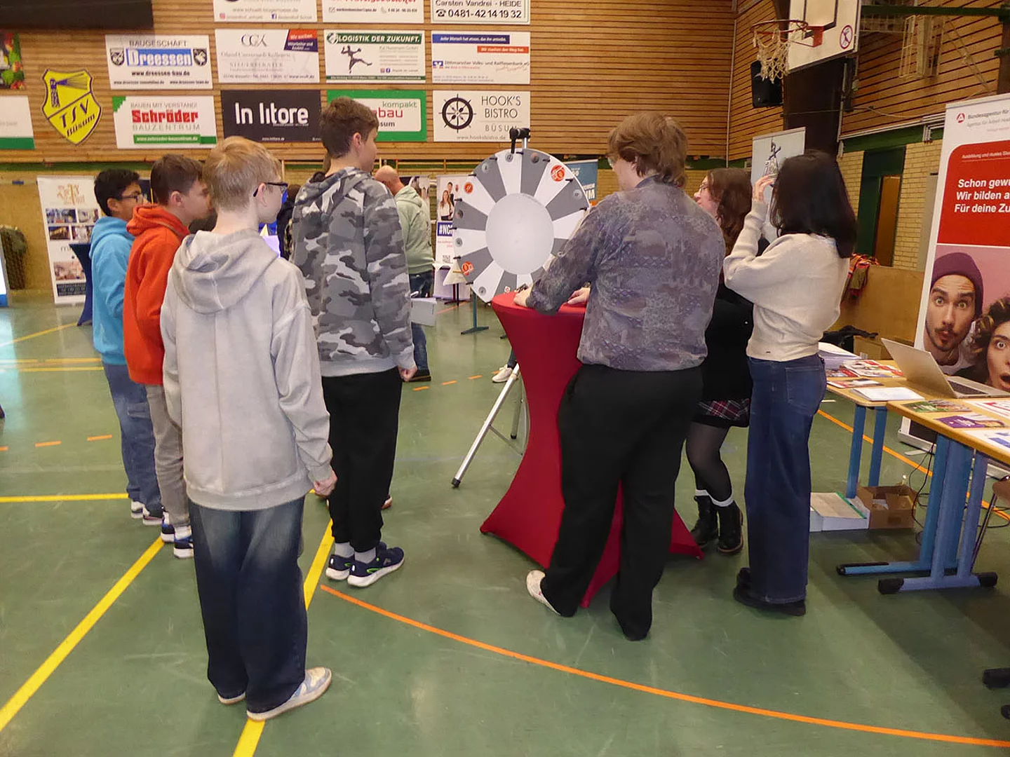 Zum ersten Mal dabei war ein Team von Schröder Bauzentrum. Ausbildungsleiterin Nicole Diercks zeigte sich sehr zufrieden: „Unser Besuch als Aussteller auf der Berufsmesse an der Schule am Meer in Büsum war erfolgreich – viele interessierte Gespräche, motivierte Schüler und eine tolle Gelegenheit, unser Unternehmen vorzustellen. Wir freuen uns darauf, den ersten Kontakt zu vertiefen und den ersten Schüler im Praktikum wieder zu sehen.“ An diesem Stand gab es ein Gewinnspiel zum Mitmachen. Es sollte die Anzahl von Schrauben in einem Glas geschätzt werden. Pelle Mittmann aus der EOa hatte 500 getippt und lag damit am dichtesten dran, denn es waren 488. Er gewann ein Spiel aus Holz.