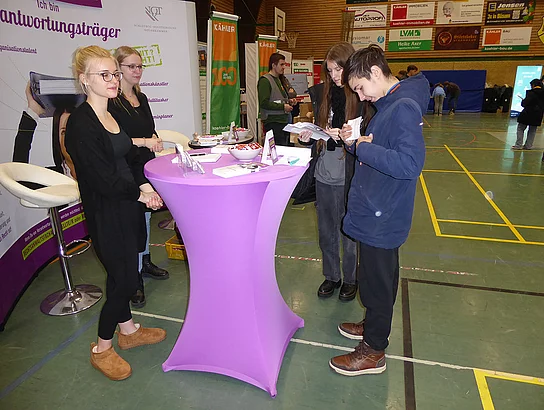 Auch an anderen Ständen gab es Gewinnspiele, Aktionen zum Mitmachen oder Dinge zur Veranschaulichung. Dies erweist sich grundsätzlich als Türöffner, um mit den Schülerinnen und Schülern ins Gespräch zu kommen.