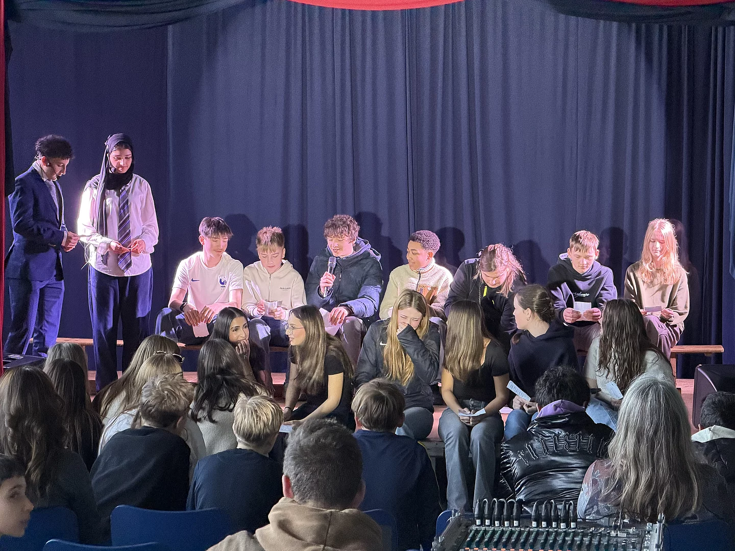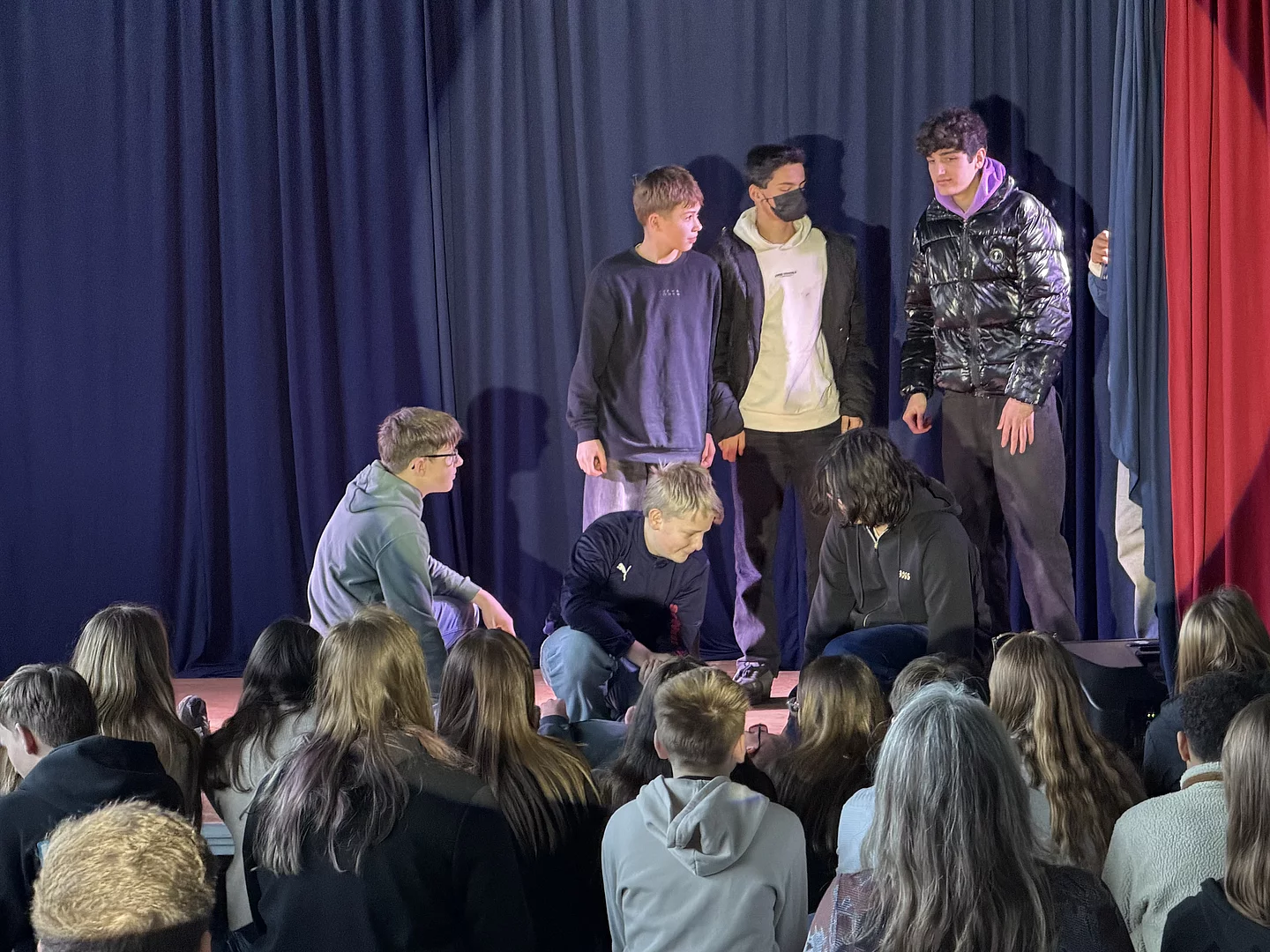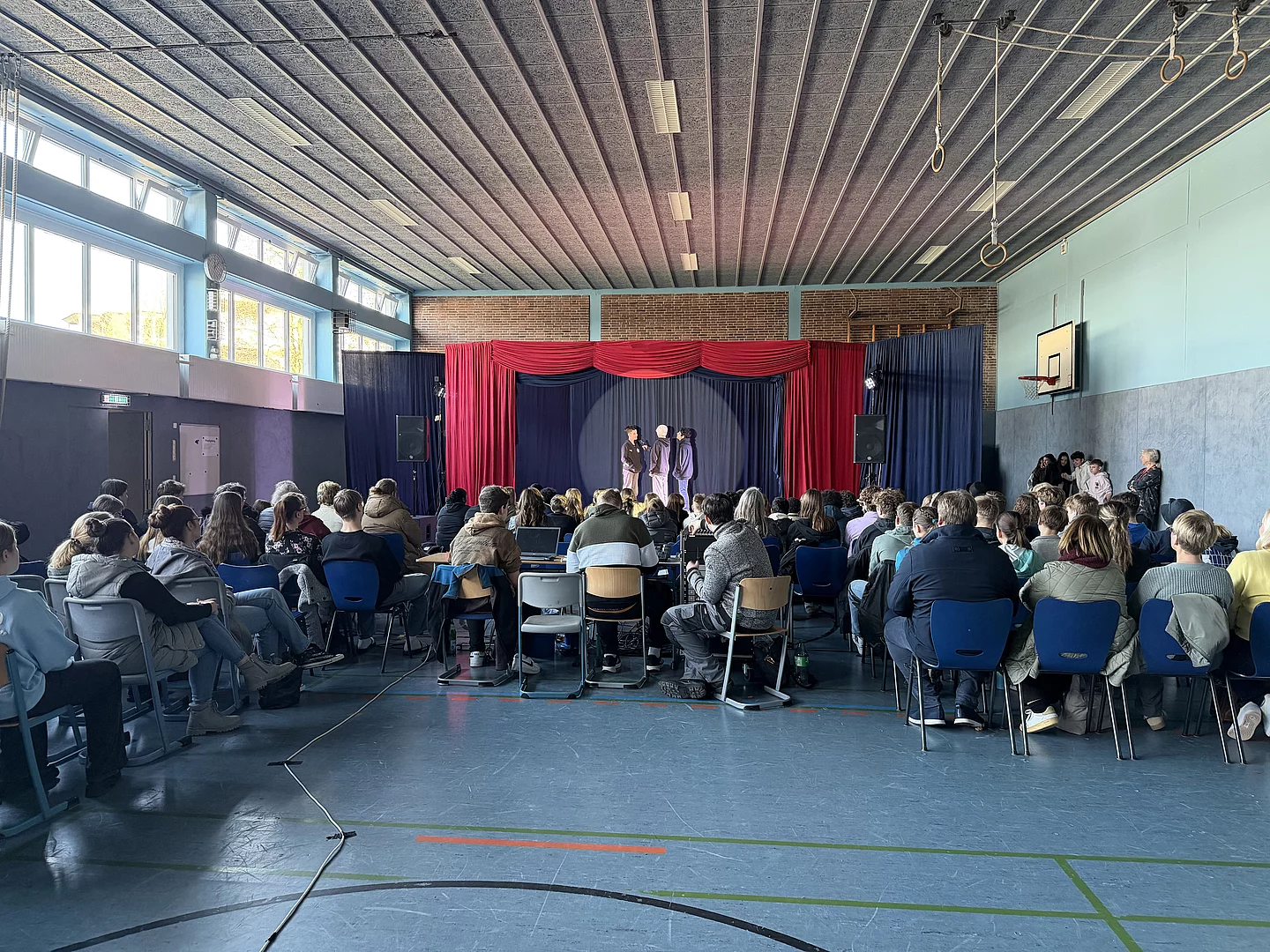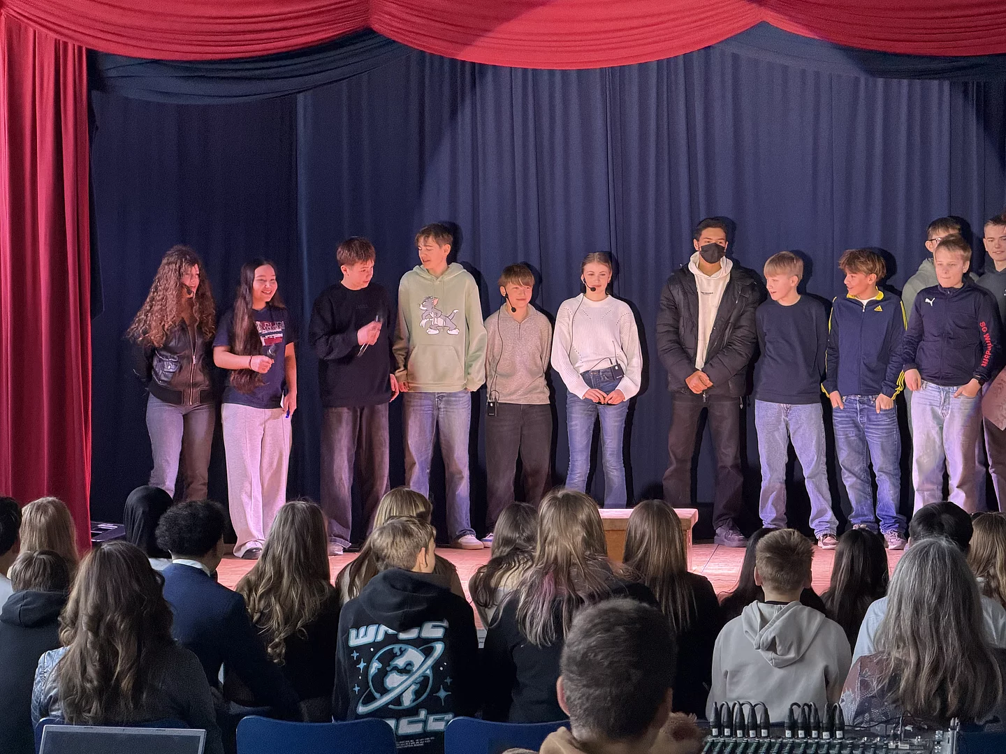 Zum Abschluss der Woche präsentierte jede Klasse eine kleine Show in englischer Sprache auf der Bühne. Die Muttersprachler lobten die großen Fortschritte der Schülerinnen und Schüler beim Anmoderieren der einzelnen Vorführungen. Das Drehbuch dazu hatten die Klassen selbst geschrieben. Es waren auch in diesem Jahr viele Familienangehörige der Einladung gefolgt. Die Plätze in der Turnhalle am Standort Otto-Johannsen-Straße waren restlos belegt. Die Gäste wurden gut unterhalten und spendeten reichlich Applaus.