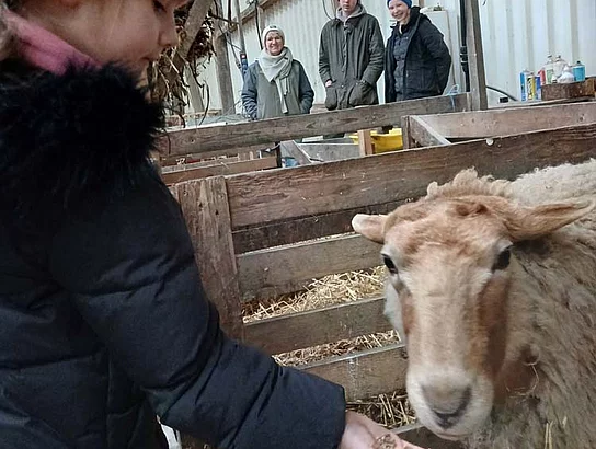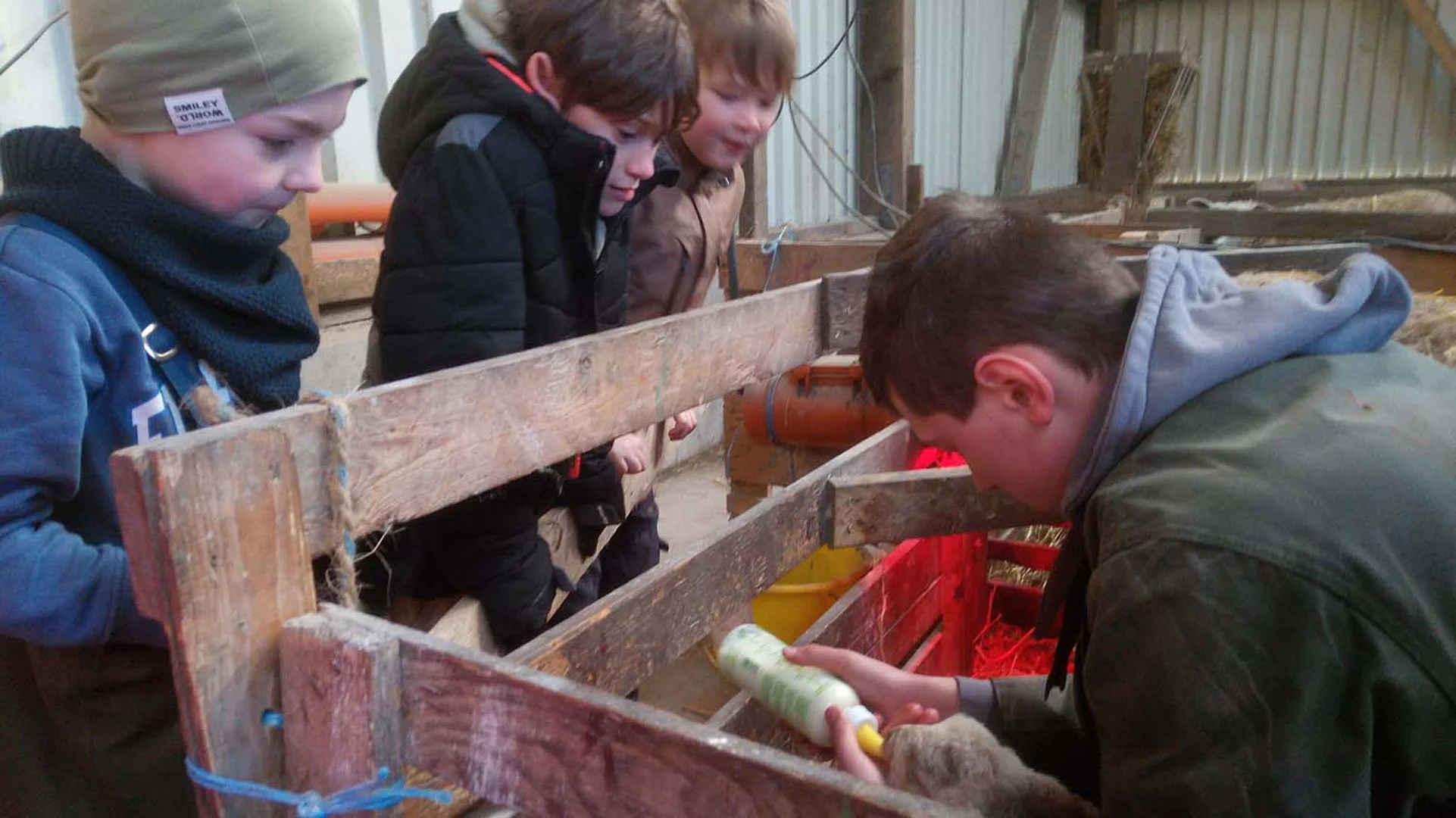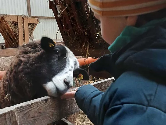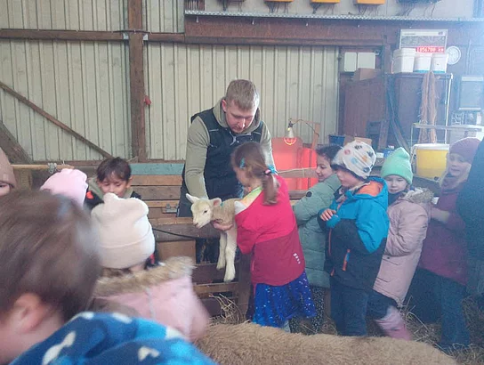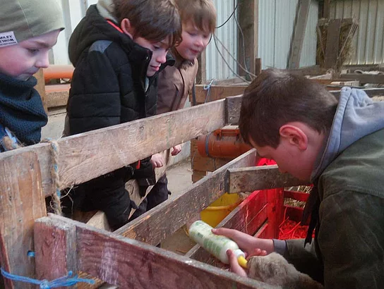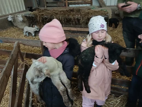 Erstklässler begrüßen die ersten Lämmer