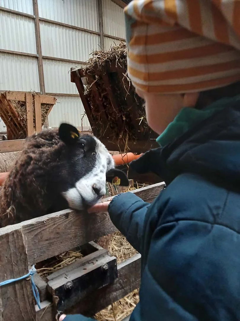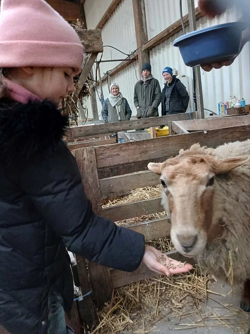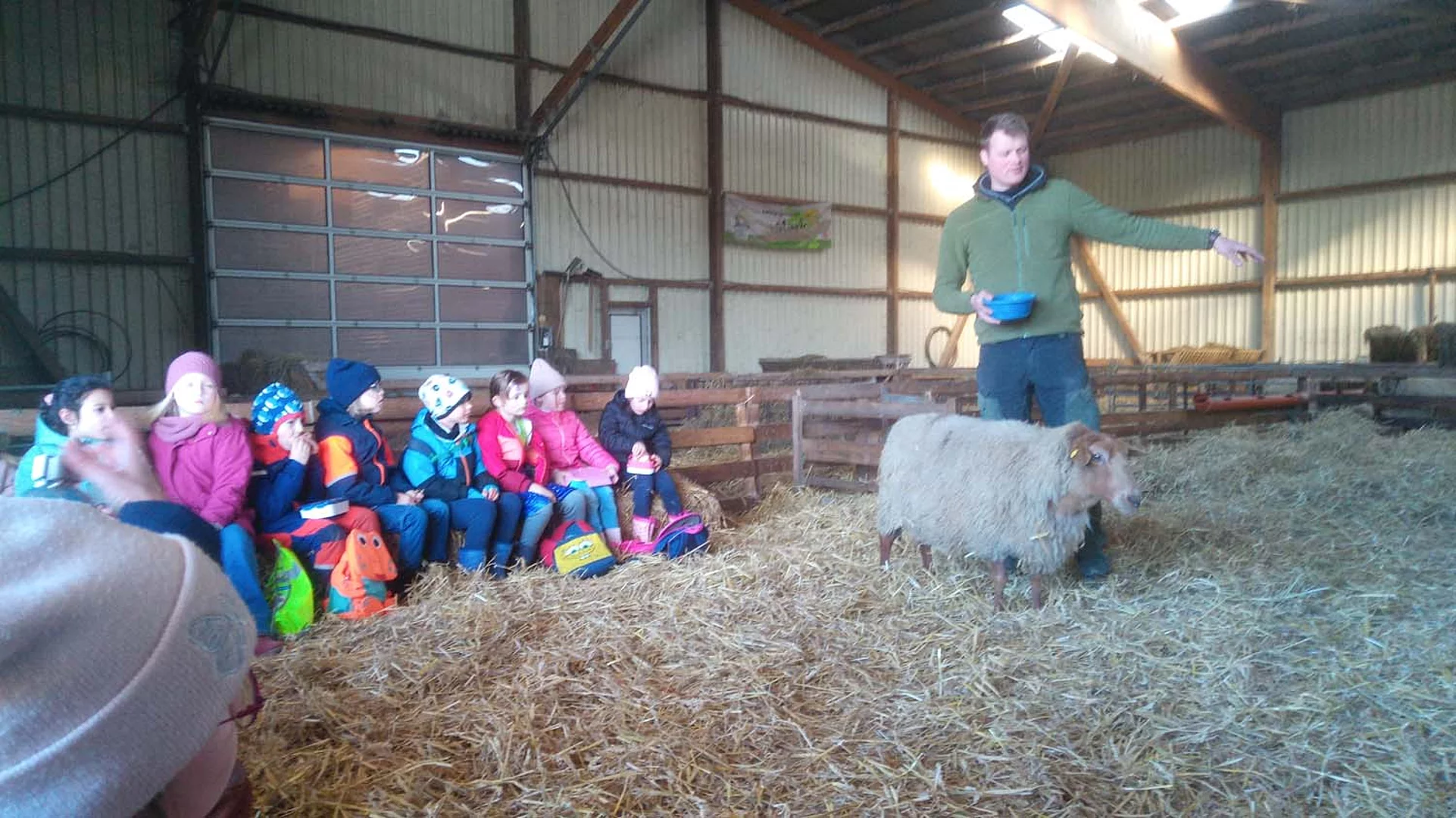 Mit dem Bus ging es gemeinsam vom Grundschulteil der Schule am Meer zum landwirtschaftichen Betrieb des Gastgebers. Zunächst wurde im Stall gemütlich gefrühstückt. Das zahme Schaf Rosalie leistete den Kindern dabei schon Gesellschaft und holte sich ihre Streicheleinheiten ab. Ein bisschen Futter, gereicht aus kleinen Kinderhänden, ließ sie sich auch schmecken. Anschließend besuchten die Erstklässler die Mutterschafe mit ihren Lämmern. Die 1b hatte besonders viel Glück, denn sie konnte eine Geburt live verfolgen. Ein weiteres Highlight waren die Flaschenlämmer, die die Kinder sogar auf den Arm nehmen durften. Als Regen einsetzte, durfte die 1a die Schafe von der Weide in den Stall treiben. Peter von Hemm vermittelte seinen kleinen Gästen viel Wissen über Schafe und deren Haltung und beantwortete geduldig alle Fragen der Kinder. Vom Schafstall ging es weiter in den Kuhstall zu den Mutterkühen und ihrem Nachwuchs. Der Ausflug hat allen viel Spaß gemacht. Die Schule am Meer dankt Peter von Hemm für den freundlichen Empfang auf seinem Hof und die spannenden Einblicke in seinen Betrieb.