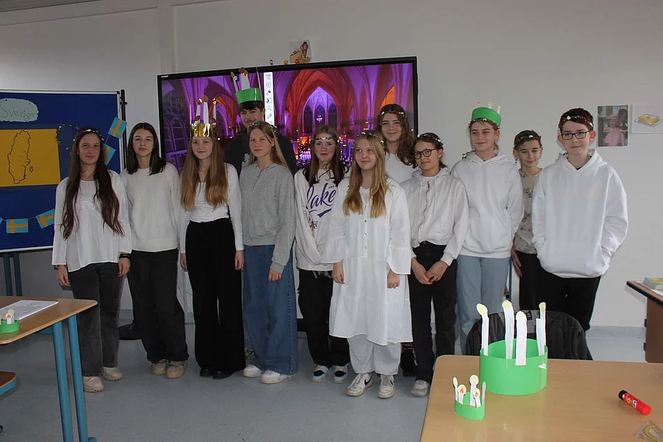 Der Präsentationstag war sehr gut besucht. Jede Projektgruppe hatte den Besucherinnen und Besuchern etwas geboten, zum Beispiel Rätsel, Spiele oder landestypische Leckereien. Passend dazu waren die Klassenräume dekoriert. Der Grundschulteil entsandte die dritten und vierten Klassen, sich am Standort Otto-Johannsen-Straße ein Bild davon zu machen, was die großen Mitschülerinnen und Mitschüler anlässlich des Europatags auf die Beine gestellt haben.