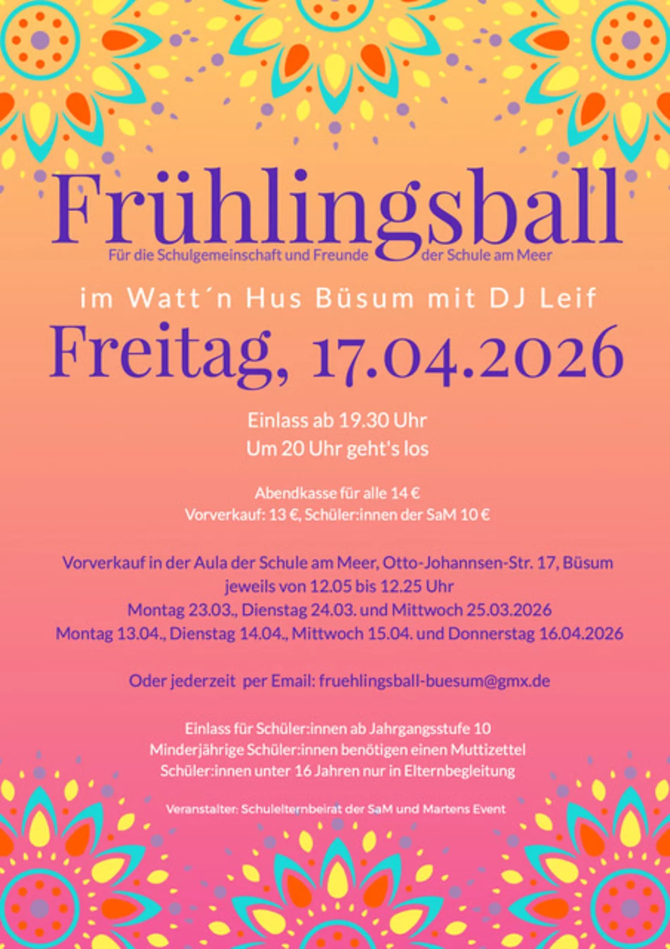 Alle wichtigen Infos rund um den diesjährigen Frühlingsball sind dem Plakat zu entnehmen! Wir freuen uns auf einen gemeinsamen, schönen Abend!