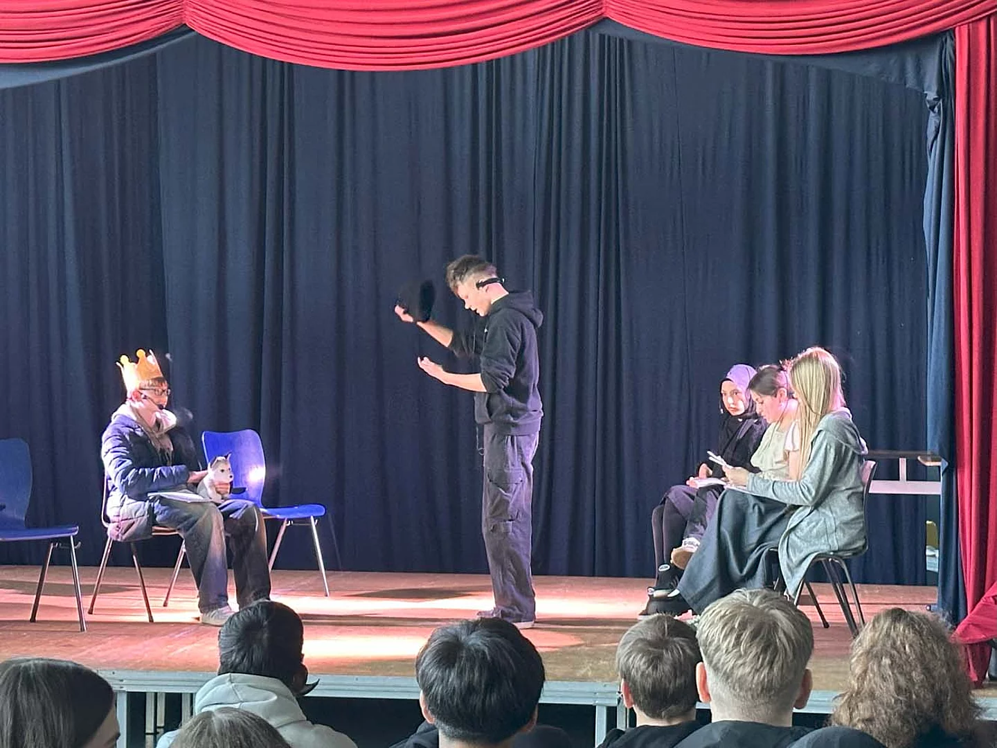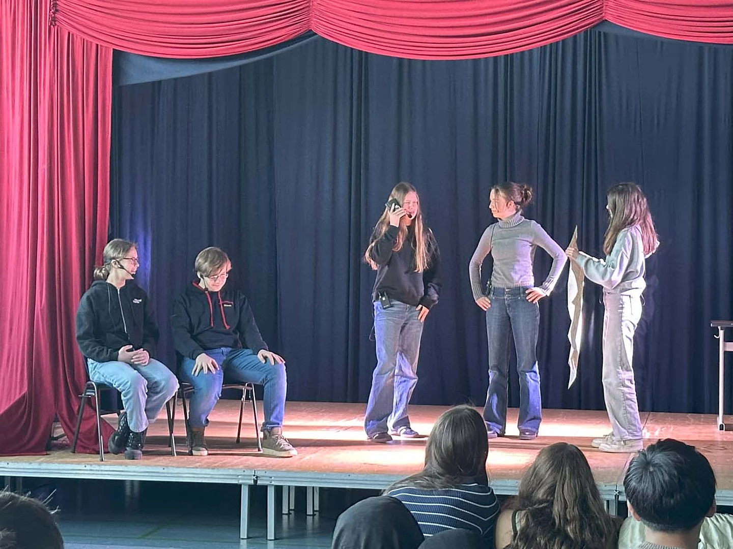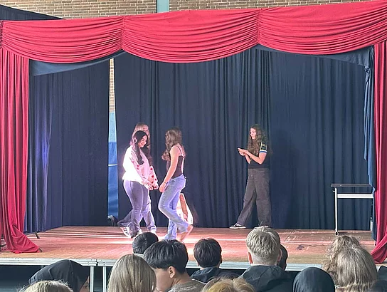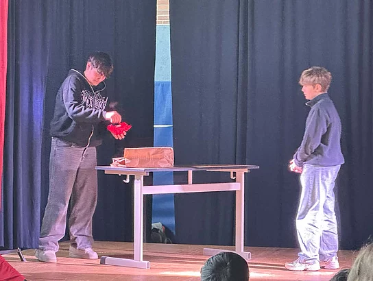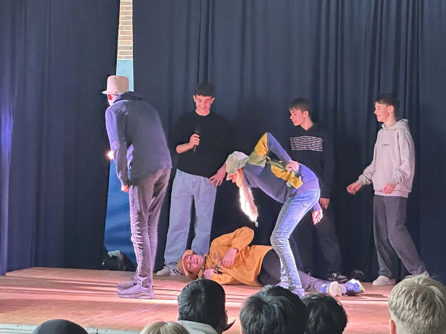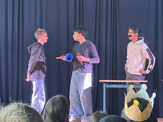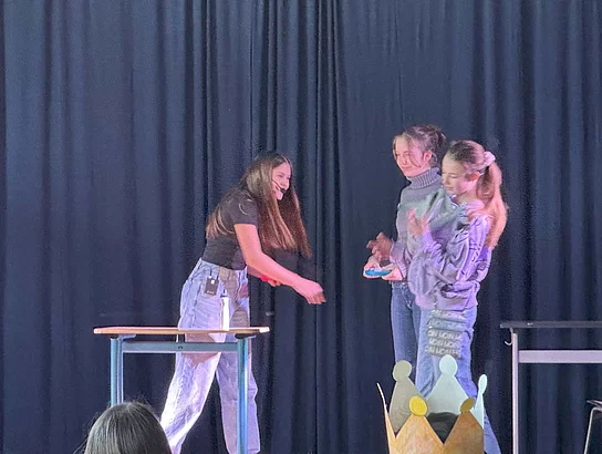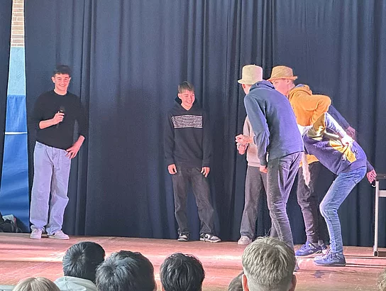 Am letzten Tag mit den „Native speakers“ (Muttersprachler) fanden die Aufführungen in der Sporthalle statt. Dazu wurden wie schon in den Vorjahren die Eltern, die Schulleitung und einige Ehrengäste eingeladen. Schnell füllten sich die Reihen, bevor die Veranstaltung um 12 Uhr startete. Zu Beginn stellten sich die fünf Englischlehrkräfte aus Großbritannien kurz vor. Sie zeigten sich begeistert von Büsum, von der Schule am Meer und von den Schülerinnen und Schülern.