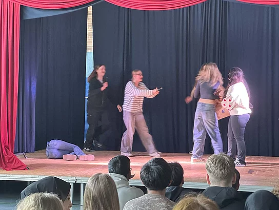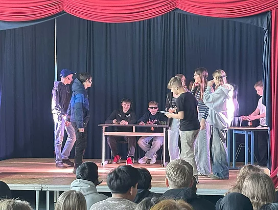 Die Schule am Meer in Büsum hatte in diesem Jahr fünf Muttersprachler zu Gast, die den ganzen Schultag die Schülerinnen und Schüler des achten Jahrgangs auf Englisch unterrichteten. Dabei wurde an der Sprachkompetenz gefeilt, an Projekten gearbeitet und ein kleines Theaterstück einstudiert.