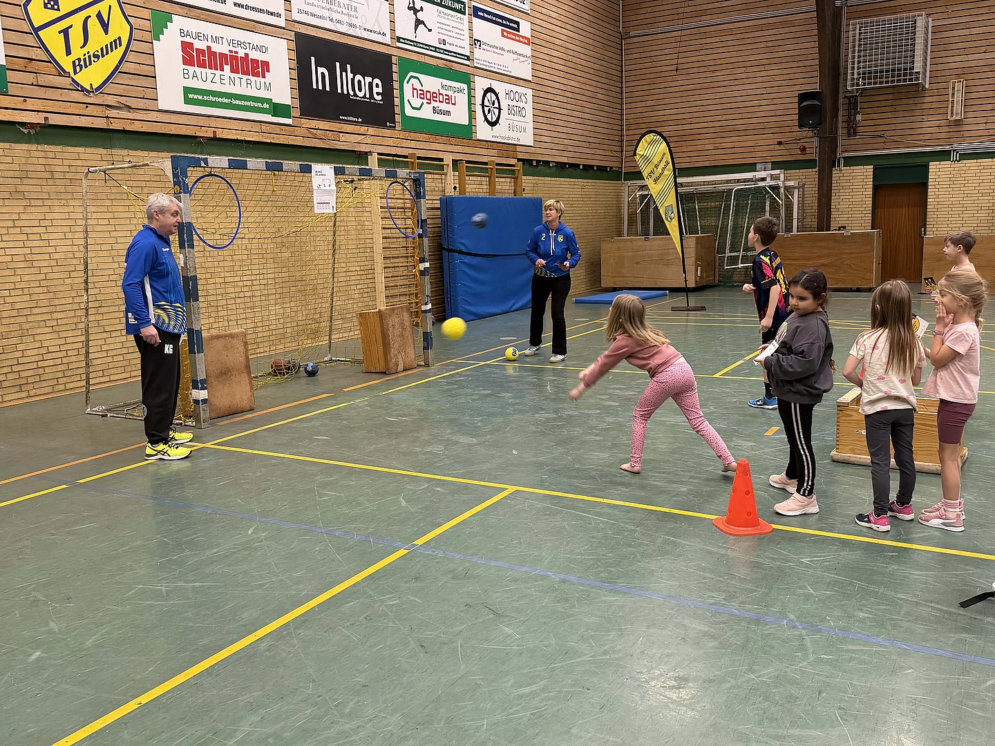 Bewegung, Teamgeist und jede Menge Spaß standen kürzlich wieder im Mittelpunkt an der Grundschule in Büsum: Die Handballsparte des TSV Büsum führte mit den Klassen 1 bis 4 den beliebten Hanniball-Pass des Deutscher Handballbund (DHB) durch.