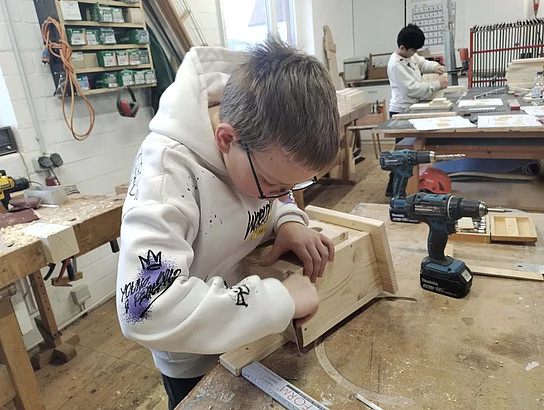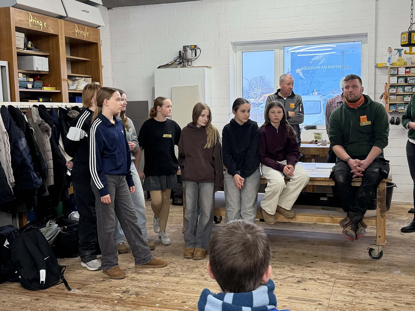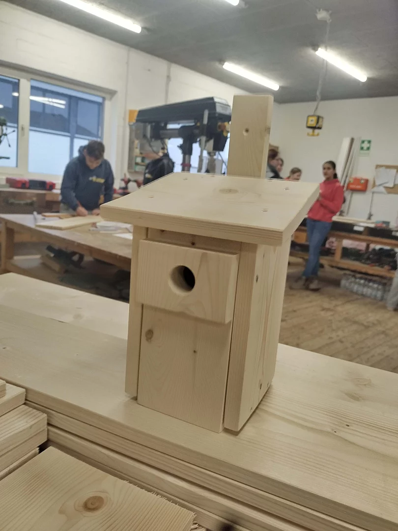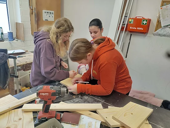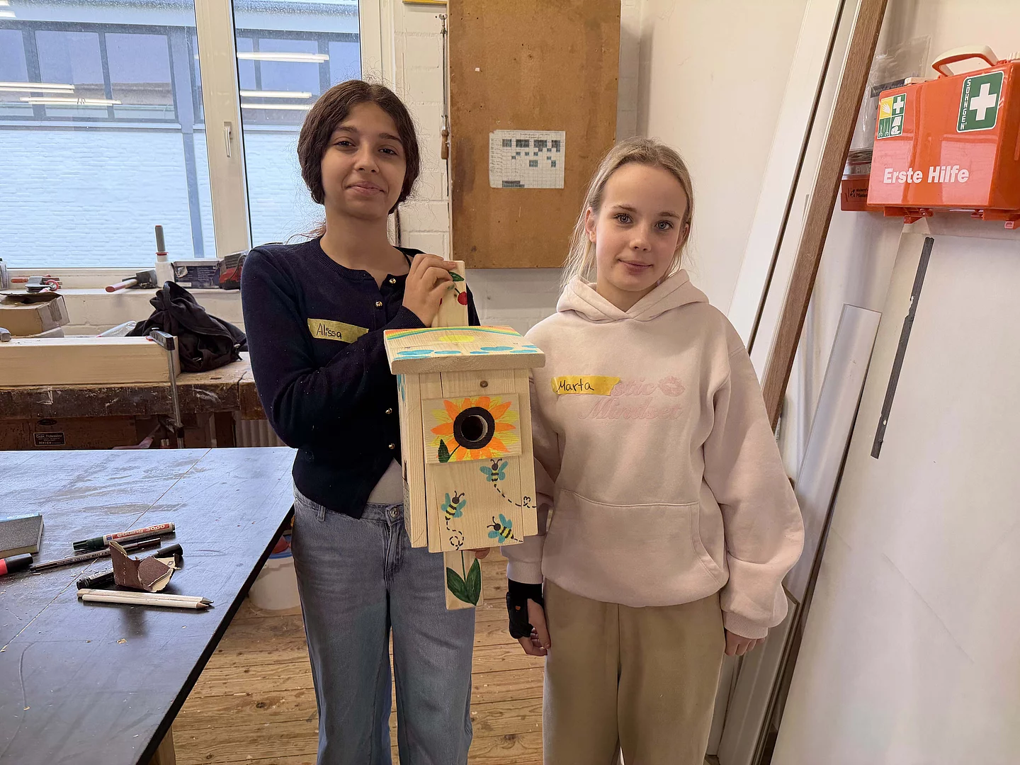 Den Anfang machten die siebten Klassen. An drei Tagen besuchten die Schülerinnen und Schüler klassenweise in Begleitung einer Lehrkraft die Tischlerei. Gemeinsam mit den Profis von Kähler Bau durften sie Vogelhäuser bauen. Nach Bauanleitung führten sie bis auf das Sägen alle Arbeitsschritte selbstständig durch. Dabei wurde schnell deutlich, wer zuhause schon viel mit Hammer und Akkuschrauber zu tun hatte. Falk Miron, Leiter der Orientierungsstufe, begleitete die 7b. „Der Projekttag war super vorbereitet und die Mitarbeiterinnen und Mitarbeiter von Kähler Bau waren sehr freundlich und haben unsere Schülerinnen und Schüler ganz individuell unterstützt“, sagte er. Tatsächlich waren am Ende des besonderen Schultages die Vogelhäuschen fertiggestellt.