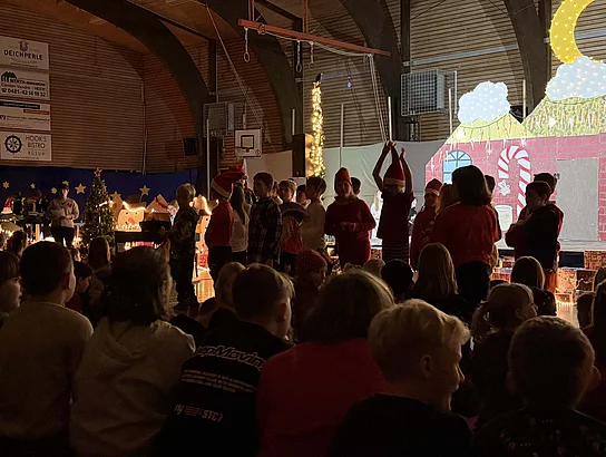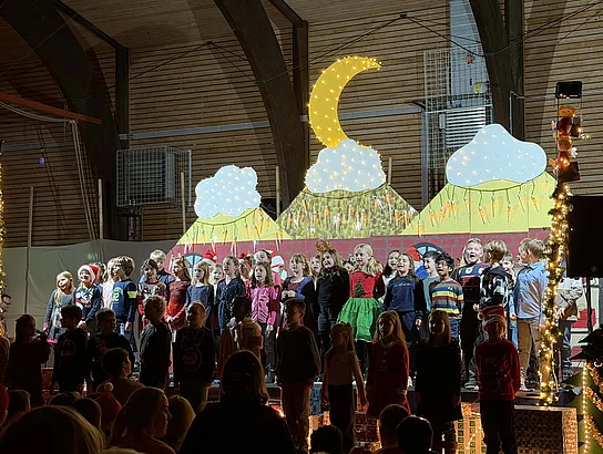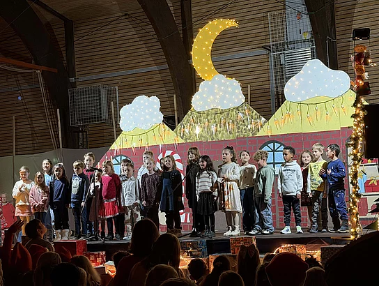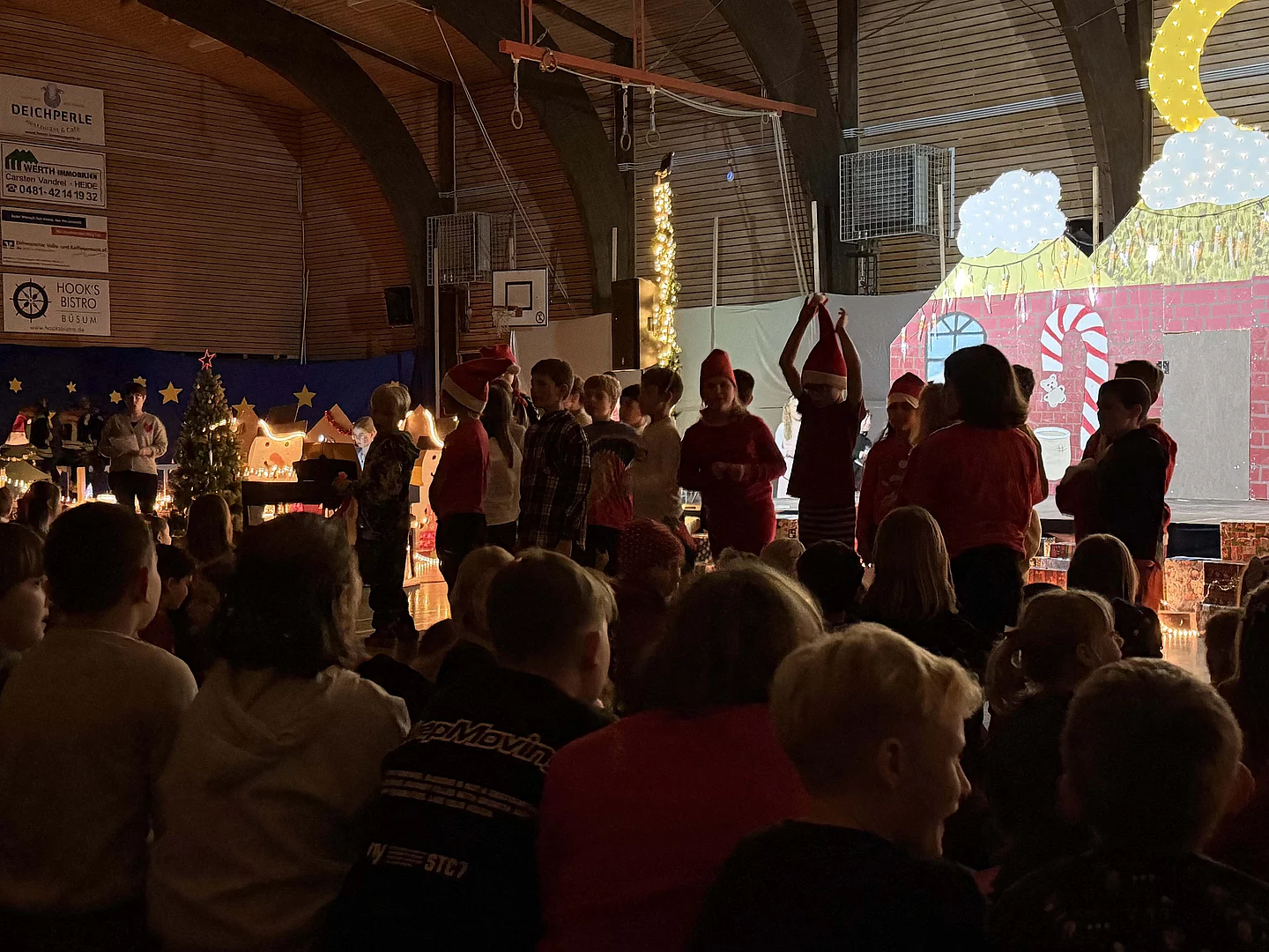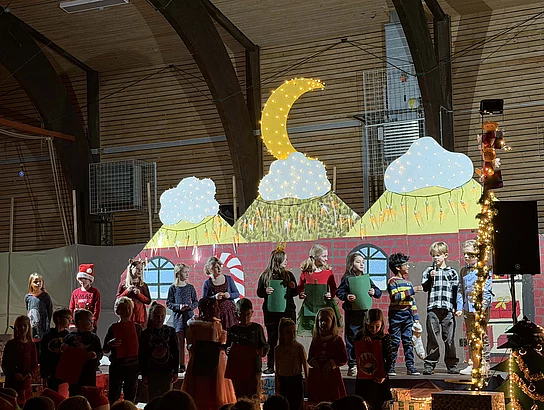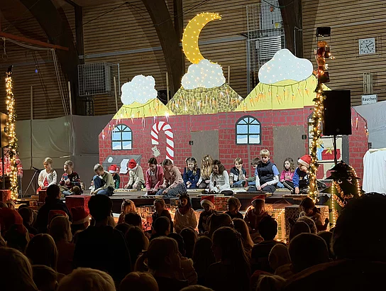 Zum Einstimmen auf das Weihnachtsfest fand am 16. Dezember 2025 die traditionelle Weihnachtsfeier des Grundschulteils in der voll besetzten Mehrzweckhalle statt.