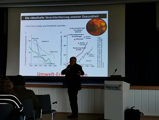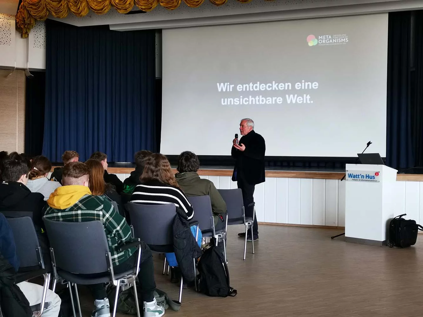 Biologielehrerin Jessica Heinrich organisierte die zwei Vorträge, an denen Schülerinnen und Schüler ab Klassenstufe zehn teilnehmen durften. Um perfekte Rahmenbedingungen für die Referenten aus Kiel und die große Schülerzahl zu schaffen, fanden die Veranstaltungen im großen Saal im Watt’n Hus statt. Ein großes Dankeschön geht an die Teams des Watt’n Hus und Martens Events, die für einen reibungslosen Ablauf bezüglich Vor- und Nachbereitung, Technik und Catering gesorgt haben. Die Nutzung des großen Saals war für die SaM kostenfrei.