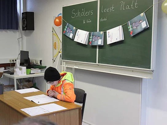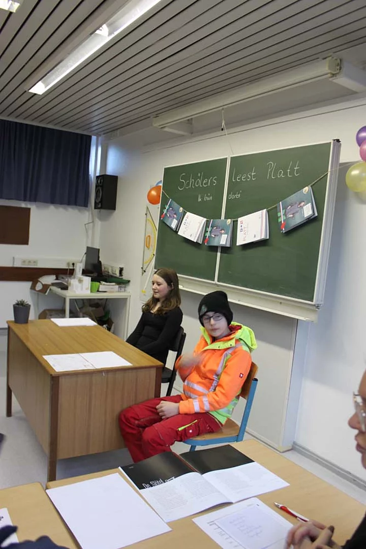 Schölers leest Platt. Dor hebb ik ni mit reekt! De ganze Klass, ob Schölers ut Afghanistan oder Syrien oder Polen. All hebbtt leest. Un ok wat verstaan! Dat het uns as Lehrers würklich richtig freut.
