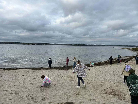 Olympiade mit einer Grundschule aus Eckernförde teil. Auf dem Spielplatz gab es verschiedene Spiele. Alle Spiele haben uns Spaß gemacht. Mit dem Bus ging es am Mittwoch Richtung Holnis. Der Bus hat uns am Strand herausgelassen. Wir sind am Strand entlang und durch den Wald zurückgewandert nach Glücksburg. Zwischendurch wurde ein Picknick im Wald gemacht. Die Bäume schützen uns vor dem leichten Regen an diesem Tag. Am Nachmittag hatten wir in der Stadt Freizeit und durften uns etwas kaufen. Nach dem Abendessen haben wir eine Nachtwanderung gemacht.