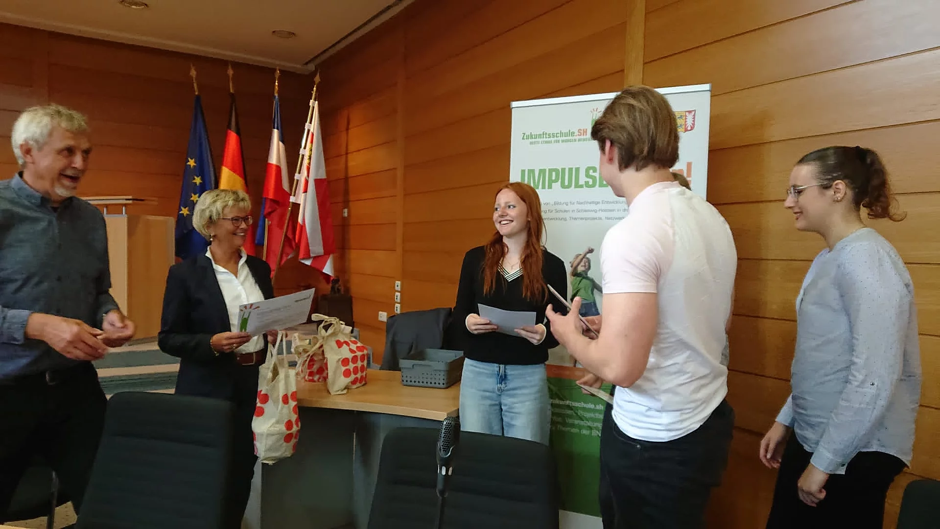 Gleichzeitig wurden bei dieser Preisverleihung im Heider Kreishaus einige Schulen zur „Zukunftsschule.SH“ ernannt, so auch die Büsumer Schule am Meer. Die SaM erhielt erstmalig diesen Titel in Stufe 2 als eine von derzeit 112 Schulen in Schleswig-Holstein. Insgesamt tragen rund 250 Schulen in unserem Bundesland diesen Titel, welcher in drei Stufen verliehen wird. In Dithmarschen dürfen sich insgesamt 15 Schulen „Zukunftsschule“ nennen. Mehr Informationen zu dieser Auszeichnung einschließlich der verschiedenen Stufen sind hier zu finden: