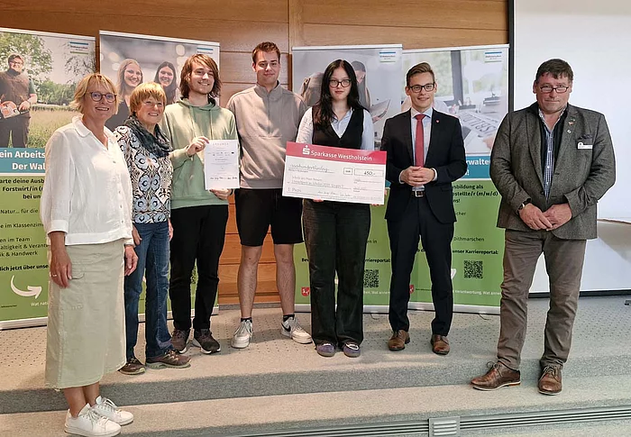 Wir haben den 1.Preis beim Umweltpreis (450 Euro) gewonnen und bleiben weitere zwei Jahre Zukunftsschule (Stufe 2) mit einem Preis von 200 Euro. Q1a Seminar und KiPo