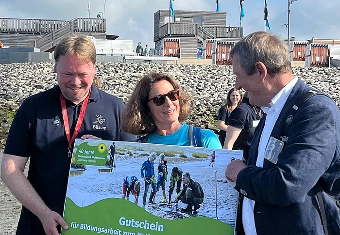 Anlässlich des 40. Jubiläums des Nationalparks Wattenmeer forderte die Nationalparkverwaltung die Gemeinde Büsum heraus: Schafft Büsum es, am 14. Juli 2025 um Punkt 9.00 Uhr mindestens 40 schleswig-holsteinische Politikerinnen und Politiker ins Büsumer Watt zu bekommen, um gemeinsam ein Geburtstagsständchen zu singen?