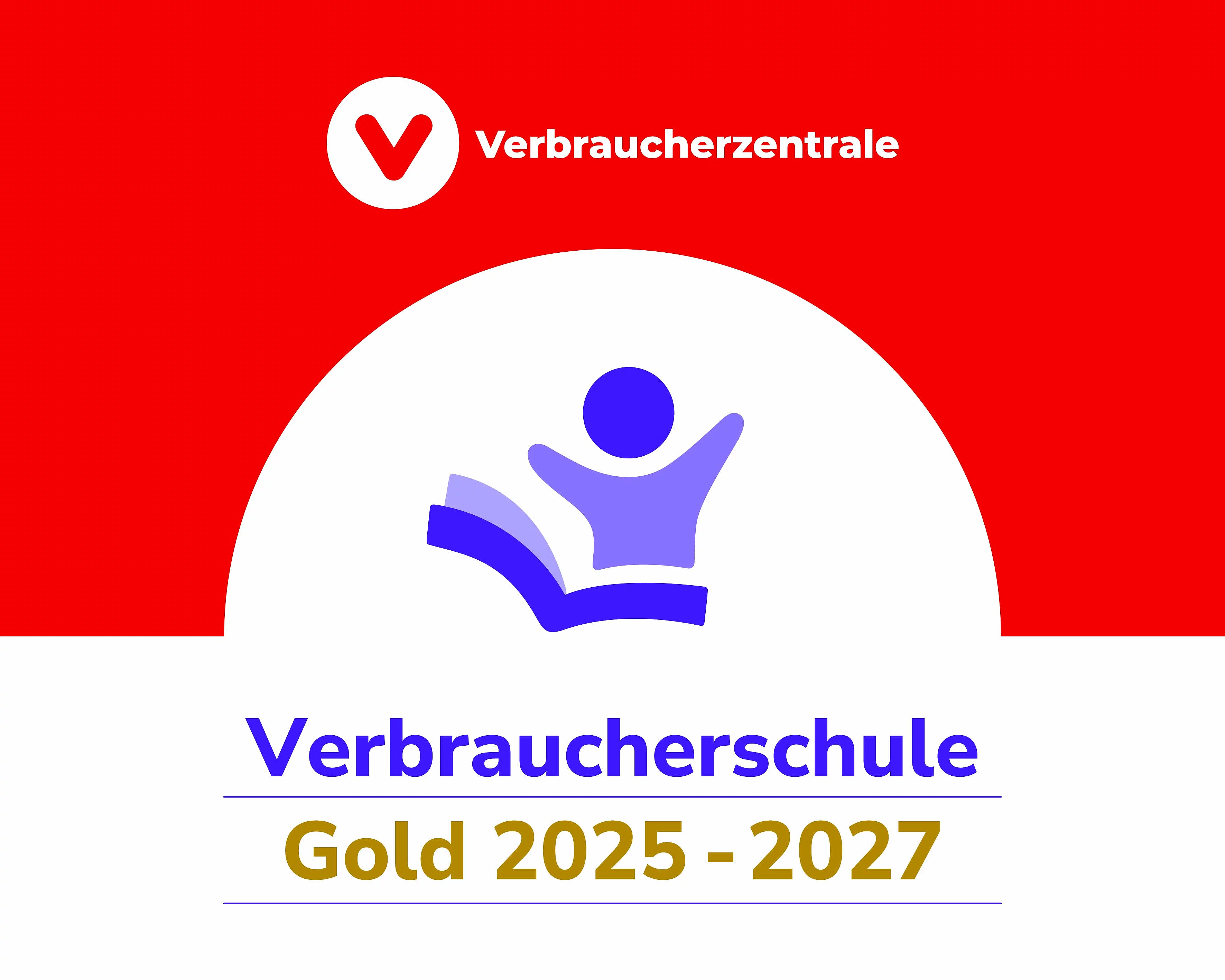 In diesem Jahr sind wir sehr stolz zum ersten Mal als Verbraucherschule Gold ausgezeichnet worden zu sein. Um diese Auszeichnung zu erhalten, muss das Thema Verbraucherbildung stark im Schulgeschehen und der Schulentwicklung verankert sein. Dies haben wir geschafft, indem wir zahlreiche nachhaltige Projekte im Fach Verbraucherbildung umgesetzt haben und auch zukünftig weiterführen werden.