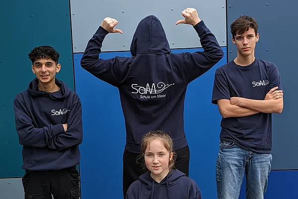 - Wir können inzwischen zuverlässig blaue Hoodies und T-Shirts mit dem SAM-Logo liefern.