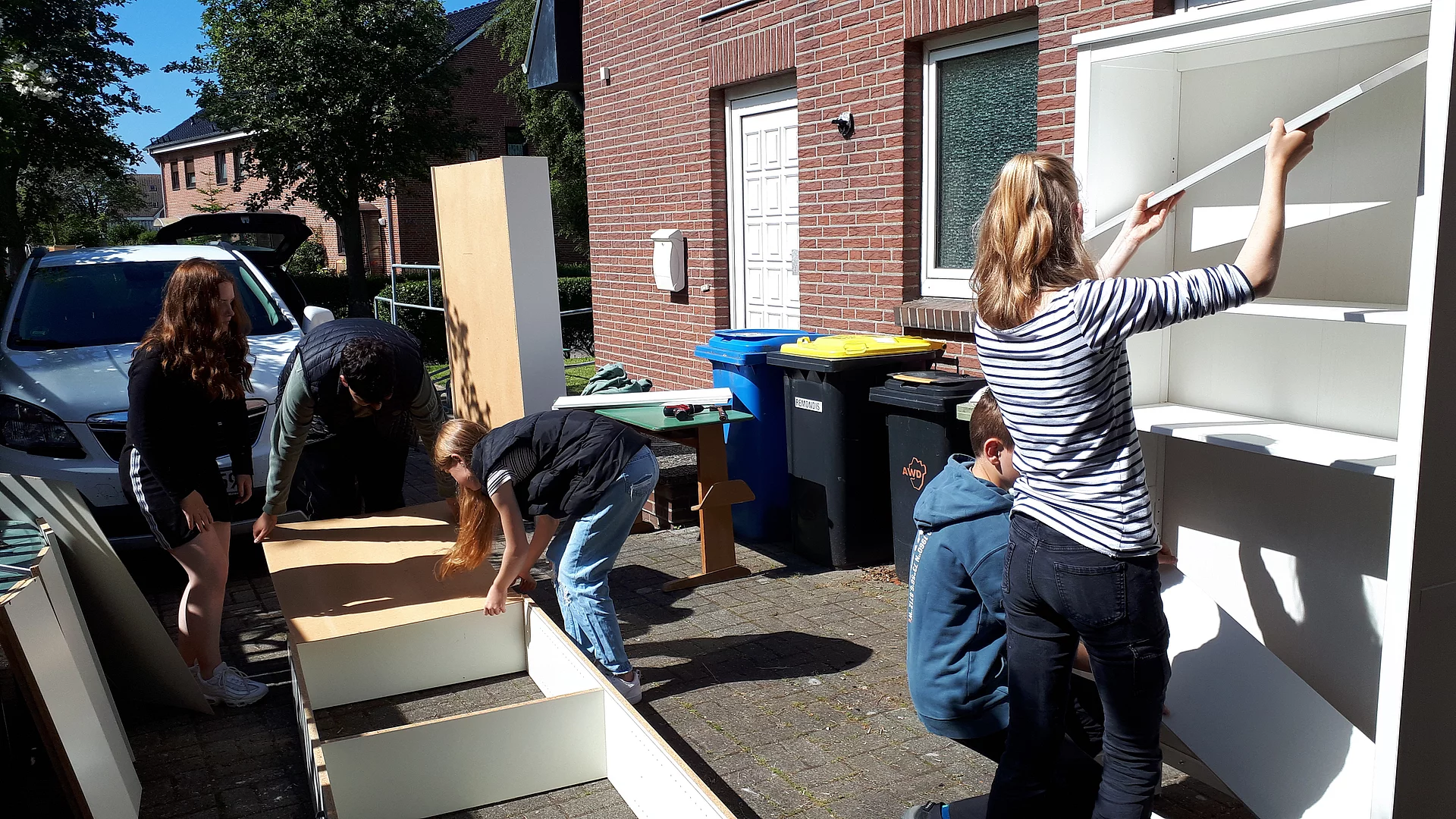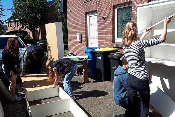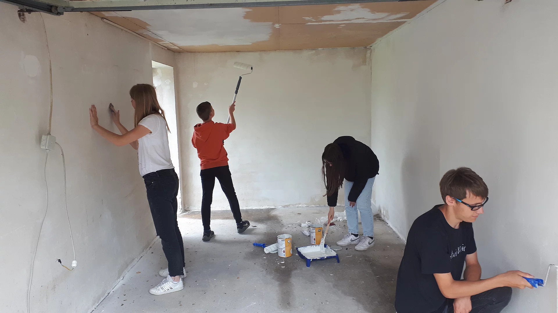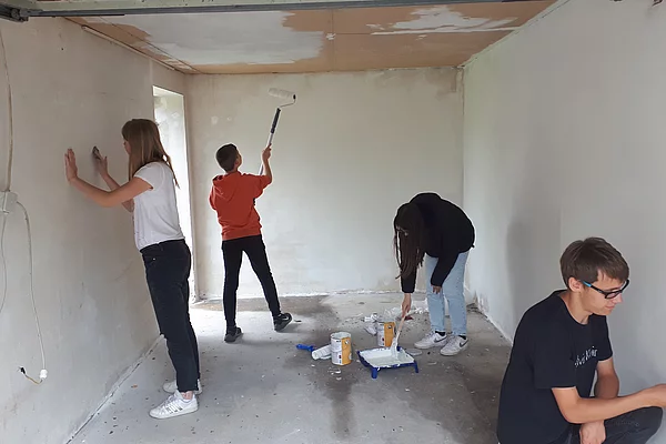 „Am Anfang haben wir Bewerbungen geschrieben, in denen wir nach Materialien oder Geld gebeten haben. Diese haben wir dann bei Einkaufsmärkten, Shops und Tankstellen verteilt. Auf diesen Wegen haben wir uns außerdem die ganze Zeit auf die Suche nach einem Standort gemacht. Die Freie Wählergemeinschaft hörte von unserem Projekt und lud uns zu sich ein. Bei dem Treffen waren dann auch der Bürgermeister und der Jugendzentrum-Betreiber mit dabei. Wir haben unsere Idee vorgestellt, und dort wurde uns die Garage im Jugendzentrum vorgeschlagen. Danach haben wir die Garage verspachtelt, geschliffen und gestrichen. Nebenbei haben wir nach Schränken bei Ebay Kleinanzeigen oder anderen Möglichkeiten gesucht, wie wir Gegenstände im Tauschstand unterbringen können. Dann waren wir fast fertig und die Sommerferien sollten bald beginnen. Also haben wir mit Flyern Werbung gemacht, um die Leute darauf aufmerksam zu machen. Als alles fertig war, haben wir alles eingeräumt und verstaut. Endlich kam der große Tag der Eröffnung.“