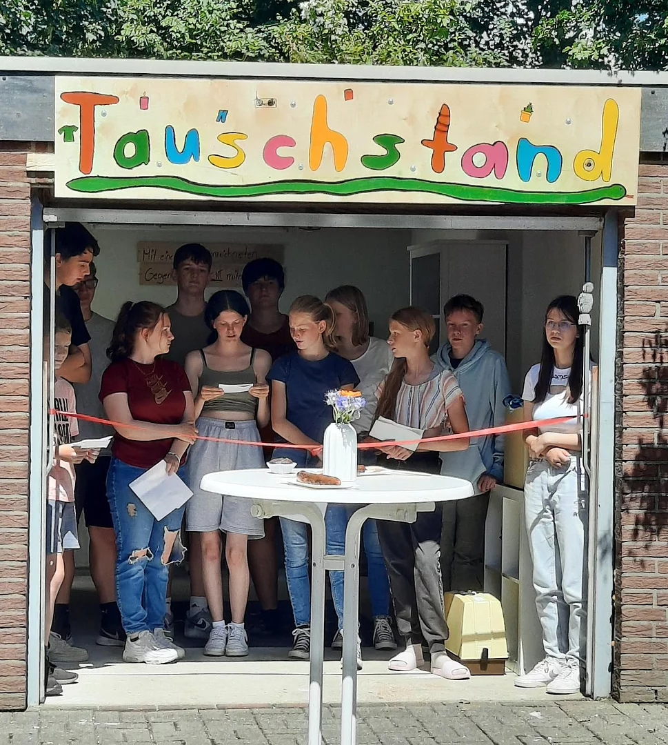 „Nach den Herbstferien wollten wir ein neues Projekt starten. Dafür haben wir in der Gruppe gebrainstormt und viele Ideen gesammelt. Dann haben wir darüber geredet und viel überlegt. Zum Schluss haben wir abgestimmt und uns für den Tauschstand entschieden. Im Jahr zuvor haben wir einmal eine Tauschparty organisiert und deshalb fanden wir einen Tauschstand sehr geeignet für uns.“